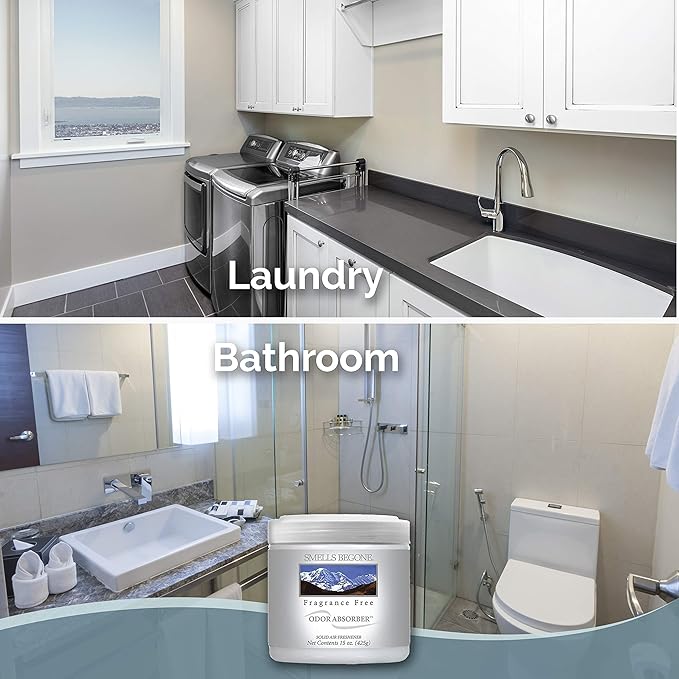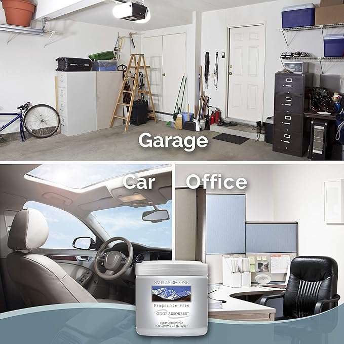 SMELLS BEGONE 15oz Gel Odor Eliminator - Absorb & Remove Tough Odors in Pet Areas, Bathrooms, Basements, Garage, Cars, RVs & Boats - Eliminate Odors Quickly (2-Pack, Fragrance Free)