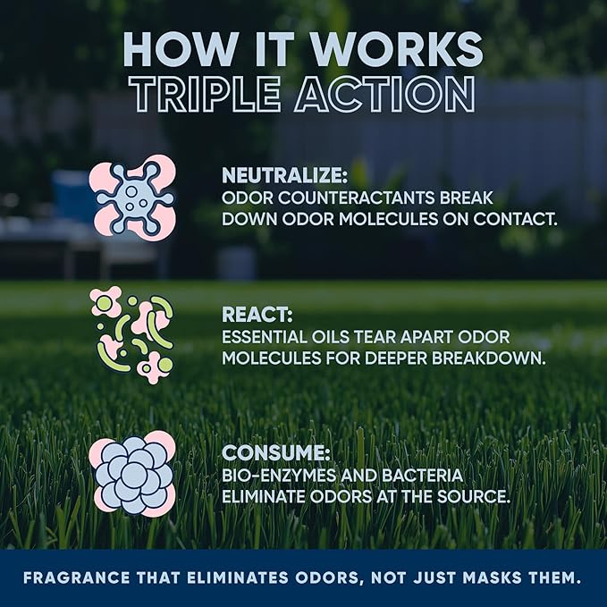 - Powerful All-Natural Odor Eraser: Our Chemical-free formula is a Pet Poop & Pee Smell destroyer. Not even skunk spray can stand up to Eco Strong’s bioactive potency. Spray it on any outdoor surface, and odors will quickly and permanently disappear.