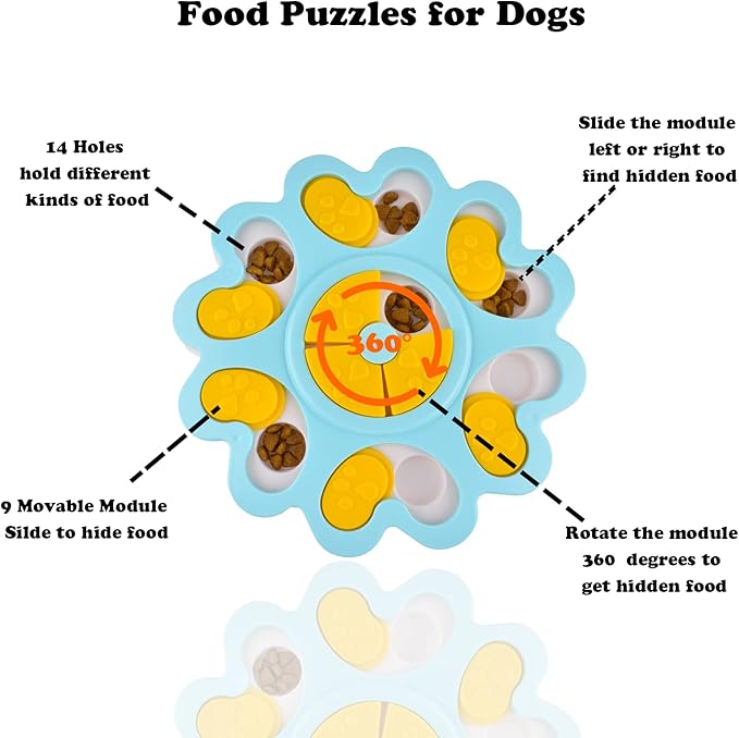 - 【Slow Feeder Bowl】This puppy puzzle toys provide Fun feeding ways for dogs, 14-hole dog treat dispenser design maximize slow feeding time, reduce the workload of the digestive system, great dog food puzzle for treat training.