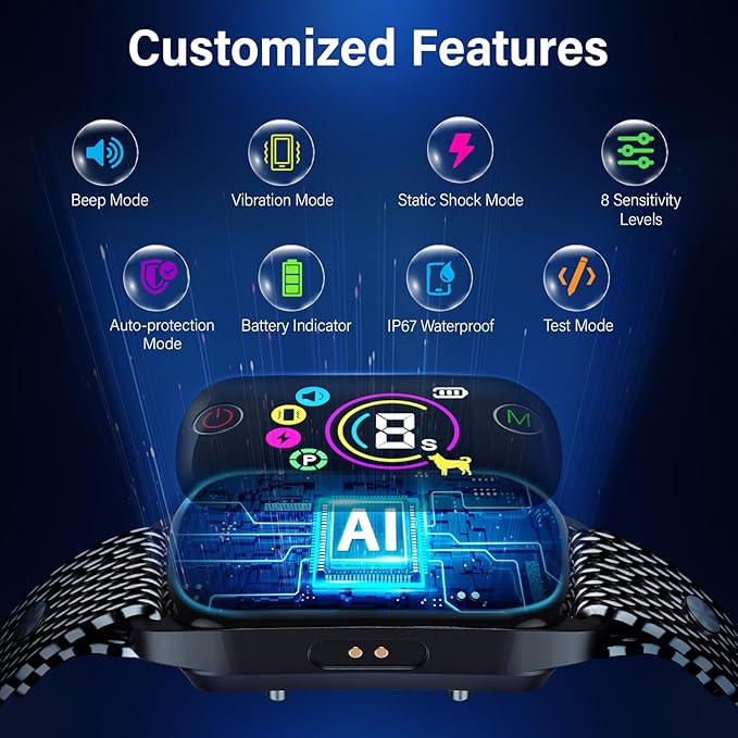 - 【Safe Effective, Easy Setup】The dog bark collar has 4 working modes; 8 adjustable sensitivity levels. Just press the M button at any time to enjoy quiet time. Please refer to the user manual before use for optimal performance and safety