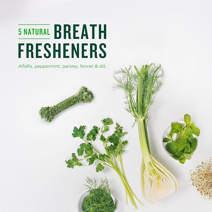 - Only Minties Have 5 Natural Breath Fresheners: Minties are the only dental treats made with 5 natural breath fresheners: alfalfa, peppermint, fennel, dill, and parsley—powerful herbs that are known to help neutralize odors in the mouth and stop stinky breath